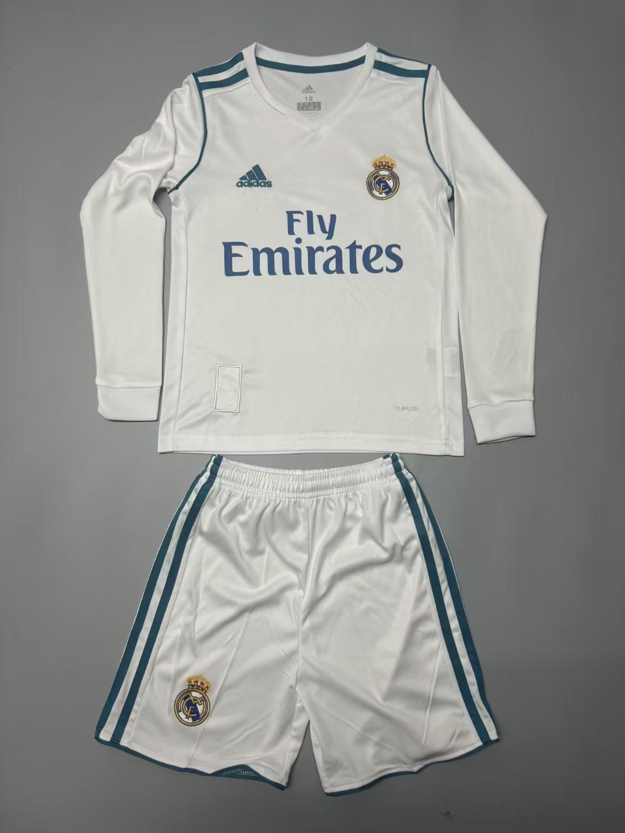 2017/2018 Retro Long Sleeve Real Madrid Home Football Shirt 1:1 Thai Quality Kids Size